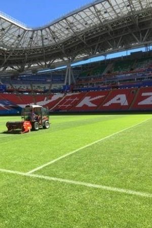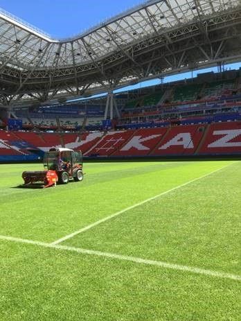 De Redexim-machines worden in alle WK-stadions gebruikt, zo ook in de Kazan Arena. Een dag vóór de kwartfinale tussen België en Brazilië is het hybrideveld in de Kazan Arena belucht met een Verti-Drain 7215 (pennen met een diameter van 8 mm) omdat het veld te hard was. De twee bovenstaande foto's zijn gemaakt op donderdag 5 juli, evenals onderstaande video.
