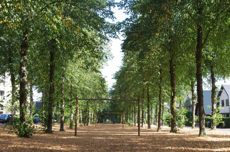 Dat is niet nodig op de Koning Lodewijklaan. Daar hebben de boomwortels alle ruimte en bladval hindert er niemand. Ook hier heeft de gemeente Apeldoorn ervoor gekozen om een historisch stadselement in stand te houden. Waar tot in de jaren zeventig een spoorlijn liep die diende voor de bevoorrading van het paleis, staan nu speeltoestellen. Aan weerszijden van waar vroeger het spoor liep, prijken nu statige bomen. 'Het idee is om het spoor als historisch landschapselement te reconstrueren middels een laanstructuur. De bomen hier hebben alle ruimte. Meestal worden boomstructuren langs wegen gelegd. Dat is niet ideaal, want dat zijn juist de plekken waar het voor de boom het meest sappelen is. Niet hier; hier zien we een boomstructuur waarin bomen in volle glorie tot hun recht komen, met alle ruimte voor de wortels en de kruin.'