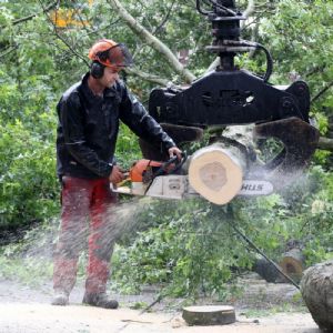 Veel groenvoorzieners die zelf ook rooien, hebben daar volgens Van Weert maling aan. 'Die zagen grotere volwassen bomen en versnipperen de complete opbrengst. Dat is voor hen makkelijker dan het apart afvoeren als stamhout en takhout. Ik erger me daaraan.'