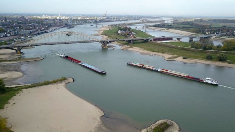 Het peil is daar zelfs een halve meter lager dan met de huidige wateraanvoer uit Duitsland zou moeten, becijfert de branchevereniging voor de binnenvaart, Schuttevaer. Bodemerosie zou de oorzaak zijn. Schepen kunnen nog maar een beperkte hoeveelheid lading meenemen en moeten dus vaker op en neer varen. Tegelijkertijd grijpen schatzoekers en strandjutters hun kans, met name bij Nijmegen, waar zich nog veel oorlogsresten in de Waal bevinden. Nog nooit eerder kon er zo dicht bij de vaargeul gezocht worden. De verwachting is dat de waterstand in Rijn en Waal deze week nog zeker 20-25 cm daalt.