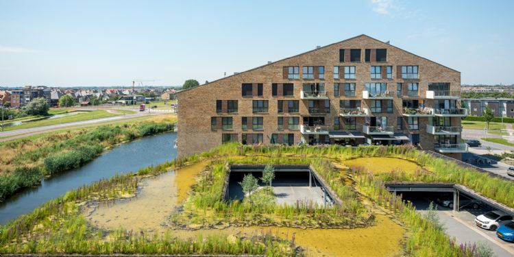 De voordelen van blauwgroene daken zijn op basis van dertig wetenschappelijke bronnen uiteengezet in vijf categorieën. Technisch en financieel, watermanagement, biodiversiteit, gezondheid, en energie. Technisch en financieel De waarde van een pand in een groene omgeving is vier tot acht procent hoger dan van een vergelijkbaar pand in een ‘grijze’ omgeving. Zelfs buren hebben dus profijt van een groen dak, maar de gebouweigenaar zelf natuurlijk ook. Een woning in een VvE-appartementencomplex heeft meer waarde als er een gemeenschappelijke buitenruimte bij zit, zoals een dakterras. Daarnaast verdubbelt de levensduur van de dakbedekking ten opzichte van een zwart dak. Dit resulteert er onder andere in dat de kosten voor aanleg en onderhoud wel 26 procent lager kunnen zijn, bekeken over een periode van 50 jaar. Bovendien leveren groene daken, afhankelijk van de inrichting, meer punten op voor de gebouwlabels BREEAM, GPR en LEED. Wist u dat bij de aanleg van een groendak de investeringsregelingen MIA en Vamil gecombineerd mogen worden? De Vamil biedt de mogelijkheid om 75 procent van een investering op een willekeurig moment af te schrijven; bij de MIA gaat het om 27 of 36 procent extra investeringsaftrek. Energie Bij de categorie energie gaat het om energiebesparing en energieopbrengst. Zonnepanelen leveren per jaar 6 procent meer energie op als ze boven een groendak zijn geplaatst, doordat de panelen dan gekoeld worden. Het koelende effect van blauwgroendaken heeft ook effect op het binnenklimaat van een gebouw. Afhankelijk van de isolatie van het dak zelf, kan de verkoeling onder het dak op warme daken zo’n 4 °C schelen. Dat scheelt aanzienlijk in de benodigde energie voor de airconditioning. Watermanagement Schade door wateroverlast is een groeiende kostenpost voor de overheid, verzekeraars en particulieren. Deze schade ontstaat als straten onder water komen te staan doordat de riolering het water niet kan verwerken. Dit heeft tot gevolg dat gebouwen schade oplopen en dat het openbare leven vastloopt. Door klimaatverandering zijn er steeds vaker zware buien, wat logischerwijs tot gevolg heeft dat er meer water verwerkt moet worden. Als alle daken in een wijk groen zijn, is er een reductie van 50 procent op het riooloverstortvolume te realiseren. Ook als het alleen om sedumdaken gaat! De reductie is wellicht nog hoger indien er meer bergingscapaciteit gerealiseerd wordt, zoals met een groenblauw dak. Biodiversiteit Dit was in het verleden een van onze belangrijkste argumenten. Vlinders, bijen en andere insecten vinden met inheemse planten op het dak meer voedsel en trekken weer vogels en vleermuizen aan. Een belangrijke impuls voor de fauna in de stad. Gezondheid Daarnaast filtert beplanting natuurlijk fijnstof uit de lucht, tot 200 gram fijnstof per vierkante meter. Dit effect is met name groot bij grasdaken en natuurdaken. Maar ook een sedumdak geeft enige filtering. Er zijn zelfs daksystemen in ontwikkeling waarbij de beplanting ook een rol speelt bij het filteren van de binnenlucht. Ook binnen is het uitzicht op een groen dak een voordeel. Een onderzoek waarbij mensen 40 seconden kijkpauze hadden op een groen dak of op een zwart dak, laat zien dat degenen die op het groene dak uitkeken minder fouten maakten bij hun computertaak. En patiënten verblijven gemiddeld één dag korter in het ziekenhuis en gebruiken tot 30 procent minder pijnstillers bij uitzicht op groen. Infographic Dit zijn in hoofdlijnen de voordelen die groenblauwe daken met zich meebrengen. In de infographic vindt u er zelfs nog meer! Een uitgebreide toelichting bij alle argumenten in de infographic vindt u op NDA.nl – handig als u uw opdrachtgever, collega’s of directie nog moet overtuigen van het nut van de aanleg van een groendak. We kunnen gerust stellen dat er wat dat betreft een revolutie gaande is. Blauwe en groene daken nemen het dakenlandschap over; de argumenten in deze infografic zullen snel gemeengoed worden.