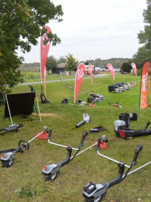 Het Duitse merk Cramer wordt zowel binnen als buiten gepresenteerd met een 40 volt-range en een 82 volt-range handgedragen gereedschappen voor professionals. Cramer heeft de ambitie om alles wat ze maken om te zetten naar accu-aangedreven. De grootste nieuwigheid van vandaag is Cramers Tourno Z-zitmaaier, een professionele maaimachine met heel hoge werksnelheden die in het voorjaar van 2019 op de markt komt. Buiten staat een prototype, dat gretig wordt uitgeprobeerd door belangstellenden.
