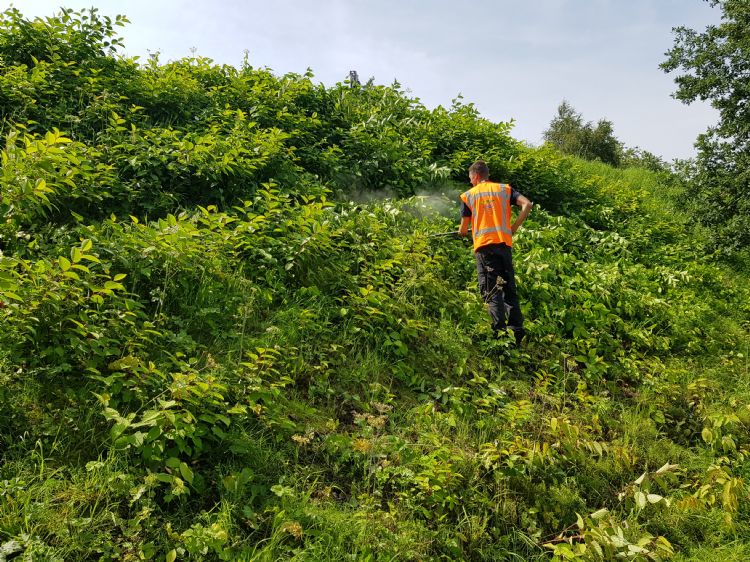 | Bestrijding van de Japanse duizendknoop op een talud van Rijkswaterstaat. Foto: Weed Free Service |