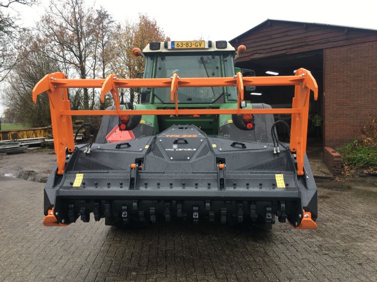 Dealer Jeroen van de Ven van Ramm: 'TMC Cancela heeft een brede range bosfrezen. Dat zijn machines van 1.100 kg tot 4.450 kg. De TFK-225 die De Groot Achterveld gekocht heeft, weegt net geen 2.000 kg. Daarmee is hij geschikt voor tractoren tot 200 pk en kan hij nog relatief eenvoudig op een aanhanger getransporteerd worden. Deze bosfrees is geschikt voor tractoren die de rest van het jaar ander werk doen in de openbare ruimte. Zwaardere bosfrezen vragen zwaardere tractoren, die dan specifiek alleen dit soort werk doen. Daar is Nederland te klein voor. Vandaar dat de TFK een waardevol alternatief is voor iedereen die zelf met een bosfrees aan de slag wil.'