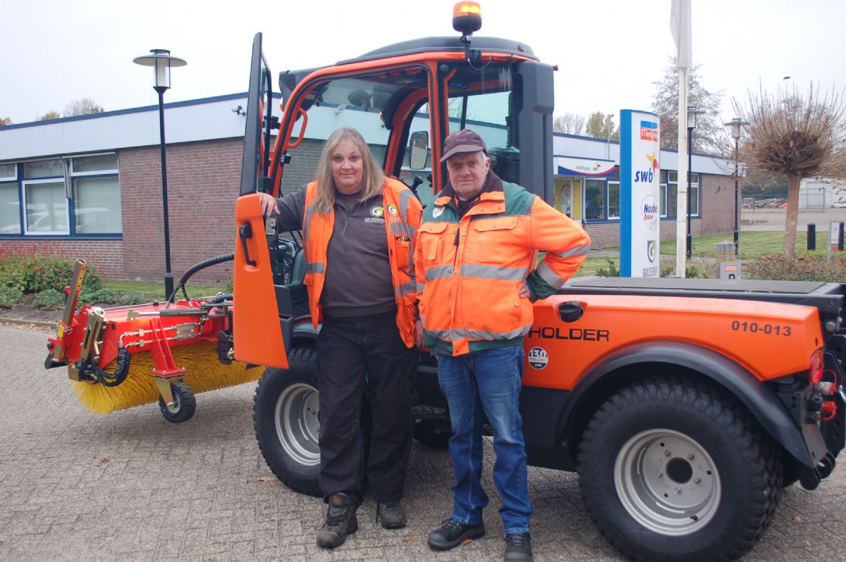 Sinds de aansluiting van meerdere gemeenten bij Gildebor, heeft deze materieeldienst veel meer werk. Machinisten Denise Boswinkel en Jan Slaghuis leggen samen uit: 'Ook Hof van Twente is aangesloten bij Gildebor. Al met al is ons werkareaal behoorlijk gegroeid. De Holder C65-werktuigdrager komt als geroepen. Voorheen huurden we een aannemer in als we extra capaciteit nodig hadden, maar dan waren we van hem afhankelijk bij het plannen van de werkzaamheden en moesten we maar hopen dat hij kon komen als het nodig was.' Bovendien verliep het werk logistiek soms onhandig. Boswinkel legt uit: 'Ik zit altijd op de veegmachine, maar stapte soms in de machine van de aannemer om onkruid te verwijderen. Dat is nu allemaal verleden tijd.'