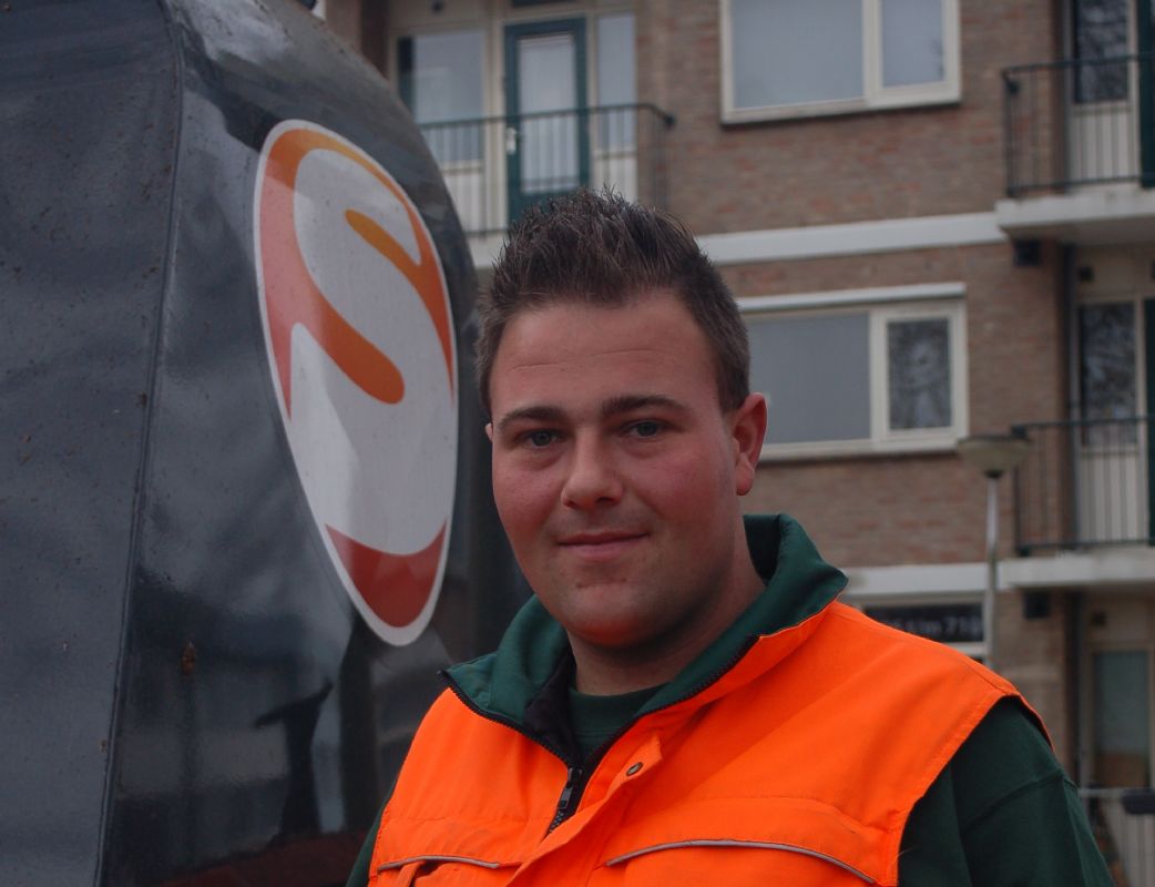 Alwin van der Veen komt aanrijden met de grote combinatie, getrokken door een 120 pk Case Luxxum-trekker. Holtslag: 'Hij is een zeer kundige machinist, die in de organisatie ook collega's begeleidt.' Van der Veen stapt van de trekker en vertelt Koop hoe de machine hem bevalt: 'Het is een forse machine, die je het beste kunt inzetten op grote oppervlaktes, zoals parken. Want je moet ogen voor en achter hebben, zodat je geen brokken maakt of tegen mensen, spelende kinderen, lantaarnpalen of kleine paaltjes aan rijdt. Gelukkig zit er een ingebouwde veiligheidscamera in de cabine voor als je achteruit rijdt.' Holtslag: 'Dat is de reden dat we deze combinatie waarschijnlijk gaan aanschaffen. Een camera waarmee je de omgeving in de gaten kunt houden, vooral in woonwijken, is een pre als het gaat om veiligheid. Die hebben wij hoog in het vaandel staan.' Van der Veen wijst naar een schoon spoor dat de combinatie heeft achtergelaten. 'Hier lagen takken. Een gewone zuigwagen raakt daardoor verstopt, maar de klepels van deze machine slaan die helemaal fijn. Het is ook prettig dat je op verschillende hoogtes kunt kiepen.'