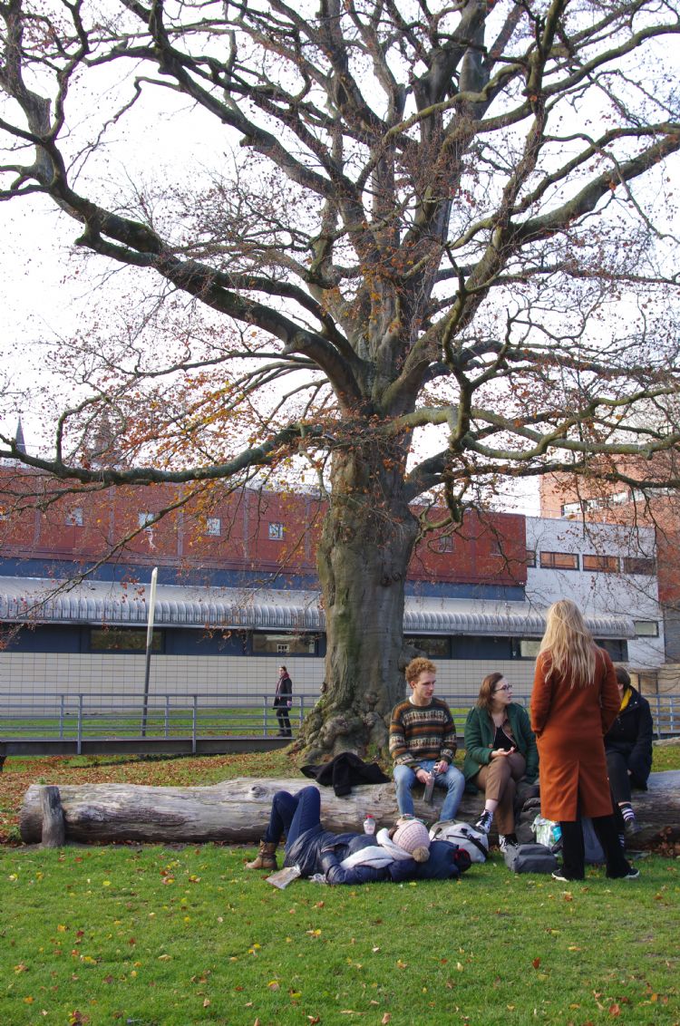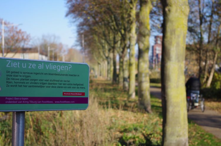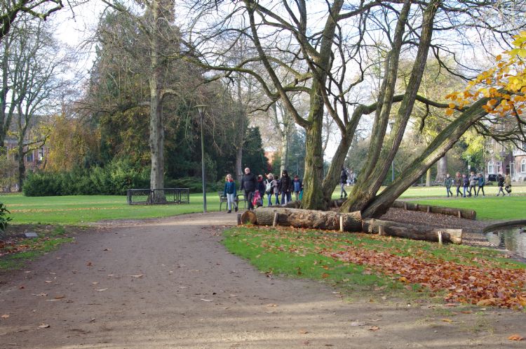 CultuurhistorieIn het Wilhelminapark aangekomen, wijst Jacobs op de monumentale bomen. 'De meeste stammen nog uit de tijd dat het park werd aangelegd, ruim een eeuw geleden.' Het hele park, een ontwerp uit het eind van de 19e eeuw van landschapsarchitect Leonard Springer, heeft grote cultuurhistorische waarde. 'Er wordt daarom veel aan gedaan om die bomen te behouden. Waar mogelijk hebben ze rondom de stam een beschermingswal van boomstammen gekregen. Om de effecten van bodemverdichting tegen te gaan, hebben we de bodem "geploft". Dat is een techniek waarbij lucht in de bodem wordt gebracht. Ook hebben we de bomen een nieuwe bodemlaag gegeven met voeding.'Vanaf het Wilhelminapark voert de tocht langs het Spoorpark en door de versteende binnenstad naar de Muzentuin. Het Spoorpark is een project in aanleg. Het wordt komend voorjaar opgeleverd. 'Het is het grootste burgerparticipatieproject van Nederland', vertelt Jacobs niet zonder trots. 'Het hele ontwerp is tot stand gekomen in cocreatie met burgers, gemeente en groenprofessionals.' VerbindingszonesVanuit de Muzentuin bij het conservatorium kijken we in de richting van het Vrijheidspark, even verderop. 'Deze plaats laat zien dat Tilburg eigenlijk best veel kleine groene oases heeft, die te verbinden zijn tot een ecologische verbindingszone. Als je er zo naar kijkt, zie je plots veel kansen.'Het doel van die verbindingszones is niet alleen dat bijen hun weg door de stad weten te vinden; ook mensen moeten erdoorheen kunnen lopen. 'Daar komt onze ambitie om natuurbeleving in de stad te brengen weer om de hoek kijken. In alles wat we doen in Tilburg zoeken we synergie tussen de ontwerpplannen en de drie pijlers van ons groenbeleid. Vroeger hing groen aan de laatste mem. Dat is voorbij.'