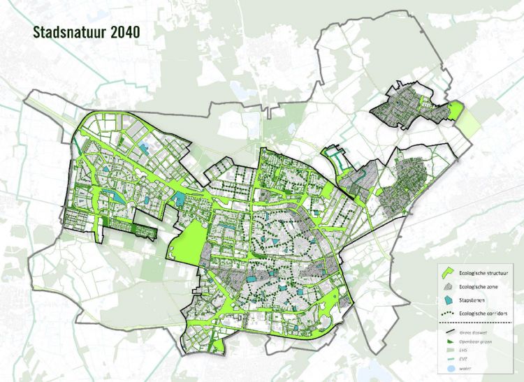 AchterstandenAlleen al voor de inhaalslag in het onderhoud van het stedelijk groen is voor de afgelopen en huidige beleidsperiode zes miljoen euro gereserveerd. Daarvan is nu bijna de helft geïnvesteerd. 'En dat is alleen nog maar om achterstanden in te lopen, om op een enigszins aanvaardbaar niveau te komen. De ambities reiken veel verder.'Tilburg wil tot in de haarvaten groen worden. Jacobs laat een kaart zien met daarop de ambities van het stadsbestuur voor 2040. Wie die kaart met halftoegeknepen ogen bekijkt, begrijpt hoe ingrijpend de stad de komende decennia gaat veranderen. De toekomstvisie laat een met groen dooraderde stad zien, waarin ecologische verbindingszones ruimte moeten geven aan al wat leeft in een rijke biotoop. DraagvlakOver politiek draagvlak heeft Jacobs niet te klagen. 'Groen beleid is gedepolitiseerd. Iedereen ziet er de noodzaak van in. Het is gemeengoed geworden.' Dat betekent ook dat er ruimte is voor dromen. Dat die dromen niet altijd even makkelijk in getallen te vatten zijn, deert de Tilburgse politicus niet. Wanneer Jacobs wordt gevraagd hoe zijn beleidsdoelstellingen te toetsen zijn, moet hij even nadenken. 'Eigenlijk hebben we weinig concrete targets. Te weinig, misschien. Dat is ook een beetje lastig. Hoe meet je welzijn of gezondheid? Maatschappelijke baten zijn zachte materie, niet in euro's uit te drukken. Bovendien ben ik geen wethouder geworden om als boekhouder inhoud te geven aan het ambt. Ik wil waarde toevoegen aan de stad en impact creëren.'Waar de wethouder zich wel graag op laat afrekenen, is de inspanning die hij levert voor de stadsvergroening. 'Een heel concrete doelstelling is dat in 2020 minstens de helft van alle aanplant biodivers is. Dat wil zeggen dat het moet bijdragen aan de biodiversiteit in de stad.'