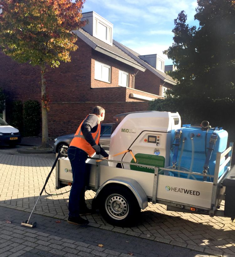 Dio Sofronas, van Hofleverancier en oudste hoveniersbedrijf van Nederland, Aardoom Hoveniers(226 jaar oud!): 'Al ruim voor het glyfosaatverbod volgden wij de ontwikkelingen over alternatieve onkruidbestrijding. Reeds in mei 2011 kochten we een Mid 2.0 (toen nog Wave). We vinden de heetwatermethode doeltreffend en weinig nevenschade gevend. In sommige gevallen combineren we de heetwatermethode met maaien en of borstelen. Na acht jaar met de Mid 2.0 te hebben gewerkt, hebben we een Heatweed Mid 3.0 aangeschaft. We zien duidelijk dat de machine is doorontwikkeld: hij is compacter, en heeft een hogere capaciteit door de hogere hoeveelheid water. Hij is ook gebruikersvriendelijker geworden, doordat je minder hoeft in te stellen. De temperatuur wordt automatisch ingesteld. Op een schermpje aan de zijkant van de machine, brandt een rood licht, totdat het water de juiste temperatuur heeft bereikt, dan springt het op groen. Je wilt natuurlijk de onkruid plant koken en niet watergeven. We kunnen er voorlopig weer tegenaan.'