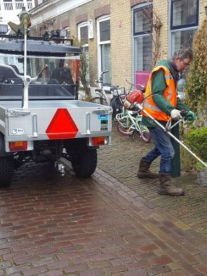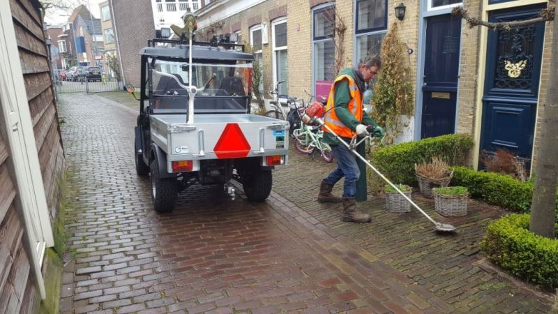 Van Houten en zijn team voeren met de Leffert FM-50-voertuigen al het terreinbeheer uit en ze gebruiken hem voor de interne logistiek, aangezien de camping verschillende locaties heeft. 'Bij de werkvoorbereiding van de onderhoudsklussen verzamelen de medewerkers alle gereedschappen en materialen die ze nodig hebben. Dat kan zijn voor bladruimen, bestraten of snoeiwerkzaamheden. Daarna hangen ze een aanhanger achter het voertuig. Ze gaan met de Leffert FM-50 van klus naar klus. Vanaf elke werkplek nemen ze het afval mee terug in de aanhanger.' De voertuigjes lenen zich goed voor een camping. 'Een VW-busje met aanhanger komt al snel knel te zitten tussen caravans en in smalle straatjes. De Leffert FM-50 piept overal tussendoor.'