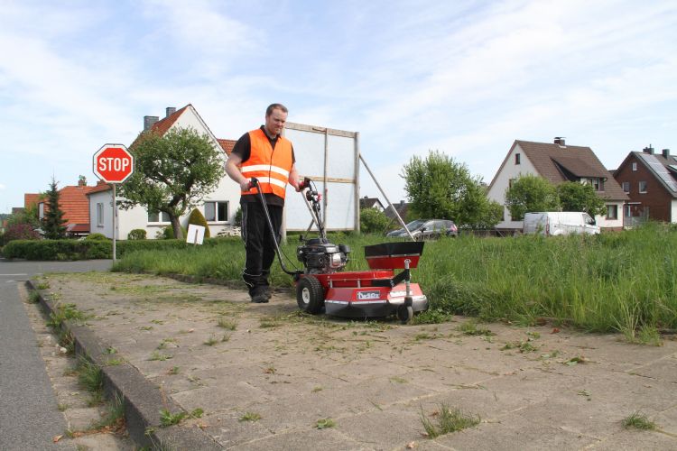 Als geschikt koppel noemt hij de borstelmachine TW50S/TW50X en de veegmachine TK38 professional. 'De TK38 professional heeft, net als de TW50X, drie versnellingen vooruit en één achteruit. Die kan met zijn borsteldiameter van 35 centimeter veel werk verzetten.' Van de twee machines samen heb je een groot deel van het jaar plezier, schetst de importeur. 'Onkruid borstelen kun je zomer en winter doen, als het maar droog is. Als het weer ongeschikt is om onkruid aan te pakken, staat de borstelmachine noodgedwongen stil, maar de veegmachine niet. Die is voor verschillende taken inzetbaar: voor alles dat geveegd moet worden, uiteraard, maar bijvoorbeeld ook voor sneeuwruimen of bladeren ruimen. 'Hij komt het hele jaar van pas. Daardoor is het gauw een rendabele investering.'