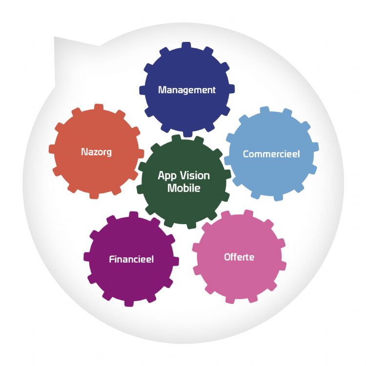 Het programma geeft inzicht in bedrijfsgegevens op alle niveaus van de organisatie:projectinformatie, managementinformatie en informatie voor rapportages aan de klant. Daarvoor kunnen de klanten van GroenVision kiezen uit tien verschillende modules.- Commercieel: relatiebeheer, nieuwsbrieven - Calculatie: kostprijs/commerciële prijs, uitbesteed werk, marge, uren/prijs per m2, RAW-bestekken inlezen en koppelen aan eigen werkpakketten, offertes maken - Werkvoorbereiding: inkoop, werkinstructie, ontwerpplanning (hierbinnen is 3D-ontwerpprogramma HelixCad een optie) - Planning: onderhoudsplanning, detailplanning van projecten, grafische planning, medewerkersplanning/urenregistratie - Materieelbeheer: stamgegevens van machines, o.a. kosten-/reparatiehistorie en onderhoud-/urenhistorie - Projectadministratie - Facturatie - Financiële administratie: debiteuren- en crediteurenadministratie, zoals balans, afschrijvingen vaste activa, btw-aangifte, debiteurenbeheer en herinneringen, internetbankieren - Hrm - App Vision Mobile