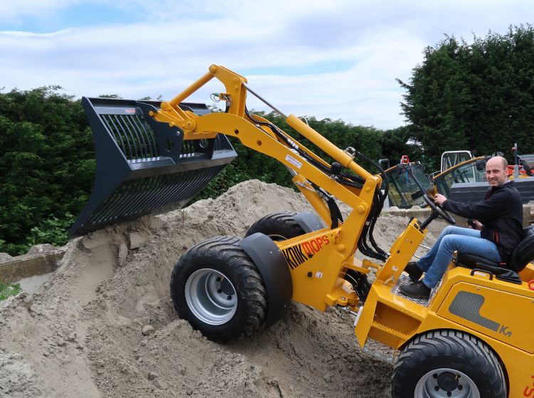 De Knikmops van knik- en telescoopladerleverancier De Schans BV in Hedel is welbekend. Na de klassieke Knikmops 90 zijn er dertien Knikmops-modellen ontwikkeld. De laatste doorontwikkeling is elektrisch en zal getoond worden op de beurs GTH in Biddinghuizen. Jan-Willem Slegh, manager sales en export bij De Schans: 'Deze accumachine is al in de media verschenen, maar dit is de eerste kans voor geïnteresseerden om erop te rijden en hem uit te proberen.'