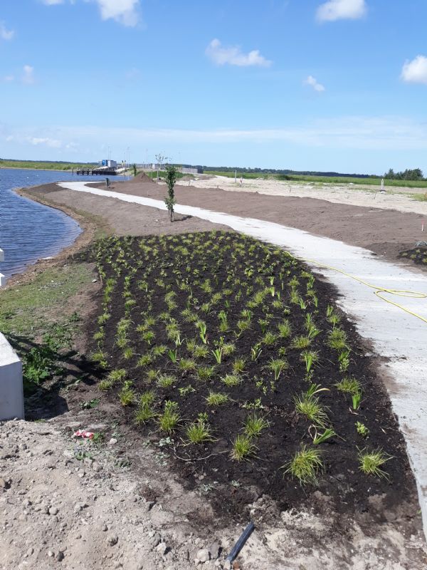 Het bestek werd in 2016 binnengehaald door Eijkelboom. Het omvatte onder meer grondverbetering en de aanleg van fundering, taluds, paden en een vasteplantentuin met meer dan 100.000 vaste planten. 'Het is iets moois als je als groenbedrijf hieraan mee kan doen. Je ziet vaak dat zo'n vasteplantentuin wordt losgetrokken van het bestek en apart wordt aanbesteed.' De Ruijter steekt zijn enthousiasme tijdens het interview niet onder stoelen of banken. 'We hebben deze kans gegrepen en zijn superblij dat we de opdracht gegund kregen.' De benodigde machines voor de klus stonden niet in het machinepark van Eijkelboom, maar dat weerhield het bedrijf niet. Machines en onderaannemers werden ingehuurd om de klus te klaren. Zelfs het aanleggen van de verlichting in het park viel onder de verantwoordelijkheid van Eijkelboom.