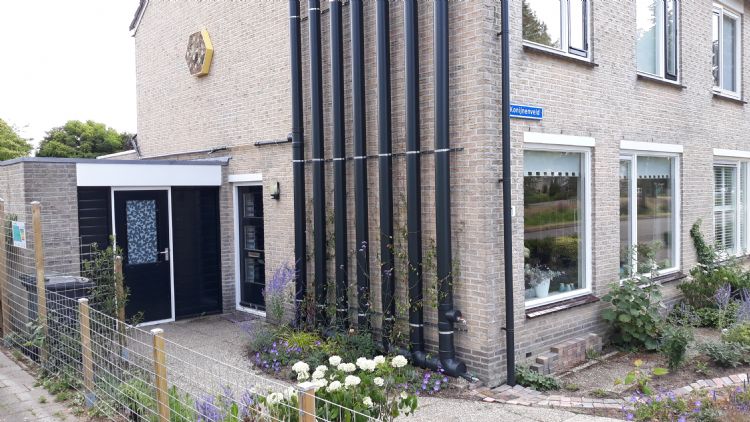 Amfibia Solutions - Water Wall Het Water Wall-concept laat op een creatieve en eenvoudige manier zien hoe maatregelen rondom waterbeheer, klimaat en ecologie in de stad aan elkaar gekoppeld kunnen worden. Waardevol regenwater wordt gebufferd in een buizensysteem dat op de buitenmuur van een woning wordt gevestigd.