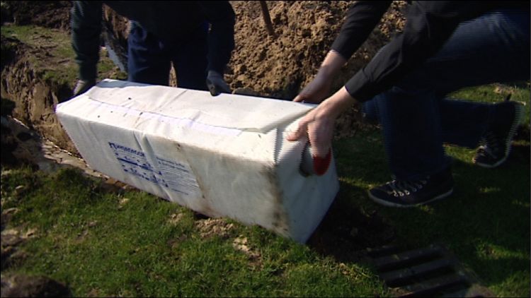 De infiltratieblokken worden net onder het oppervlak geplaatst