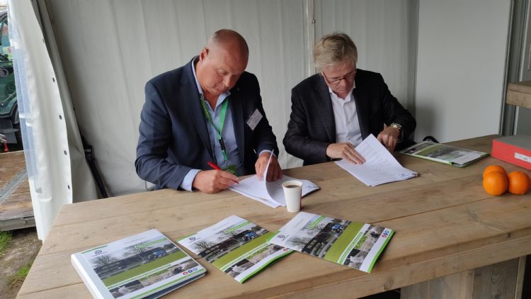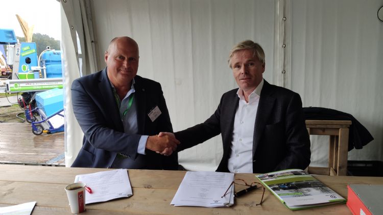 Willem Hellinga van DEM Leeuwarden tekende woensdag tijdens Groentechniek Holland in Biddinghuizen het contract met Waterkracht voor de distributie van de Weedmaster-productlijn. De beurs bewijst daarmee zijn waarde voor de exposanten.