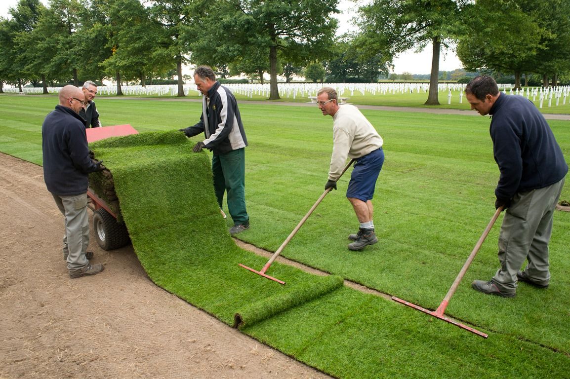 Op het Amerikaanse ereveld Margraten, één van de grootste militaire begraafplaatsen ter wereld, wordt in de tweede week van oktober gestart met het vernieuwen van 12.000 m2 gras op het 26,5 hectare grote terrein. Volgens voorman Ruud Mingels gaat het om een doorlopend project waarin gefaseerd zes hectare gras wordt vervangen. Iedere dag is zijn team van 18 mensen bezig om het terrein in topconditie te houden.