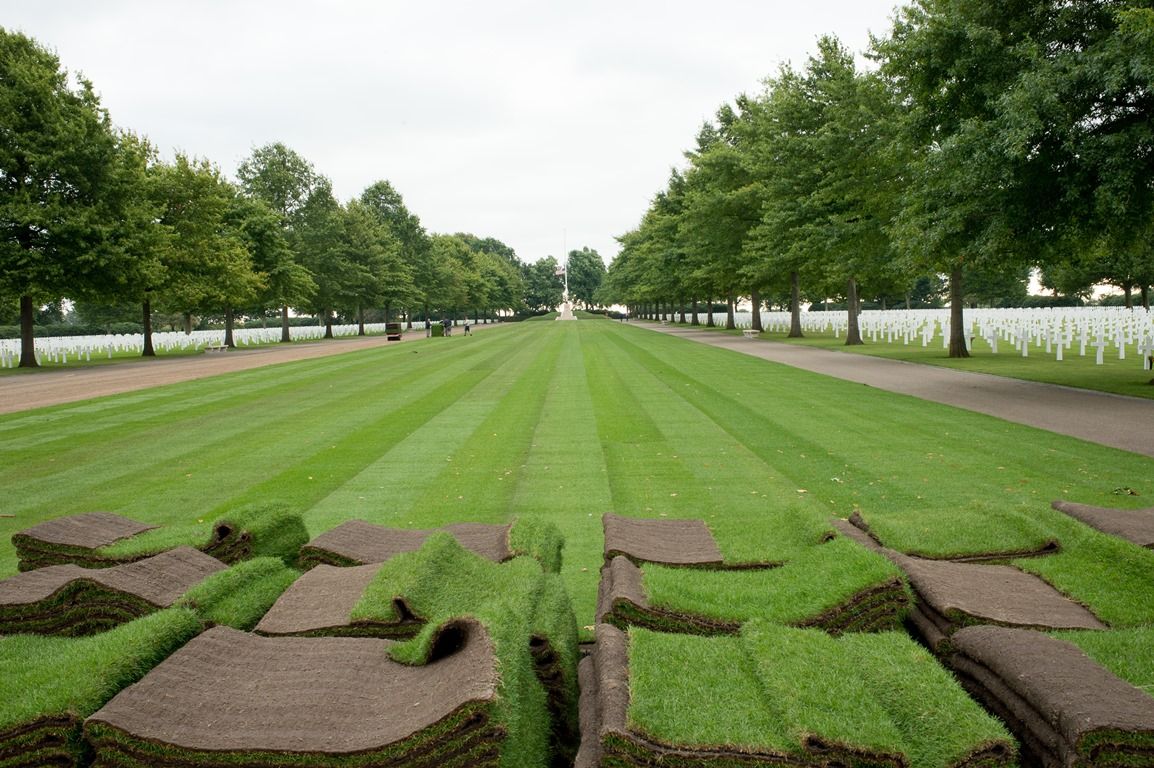 Vanwege de grote oppervlakte van het te vervangen gras koos de Amerikaanse begraafplaats voor Big-Slabs van Kuypers Graszoden in Biezenmortel. Deze brede gevouwen zoden van een meter breed en maximaal 50 meter lang werken tijdbesparend op een dergelijk project. Voor de productie van de Big-Slabs gebruikt Kuypers het graszodenmengsel van Advanta dat in korte tijd een dichte, goed snijdbare zode vormt.