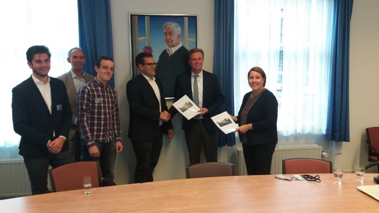 Deze week hebben Jorrit Willard, Conrad Balzer en Michel van Vulpen als studenten van Hogeschool van Hall Larenstein het rapport 'Groen in de Stad' aangeboden aan Tweede Kamerleden Arne Weverling en Kelly Regtersloot. De studenten werden begeleid door Lubbert Hakvoort, docent Management van de Leefomgeving.