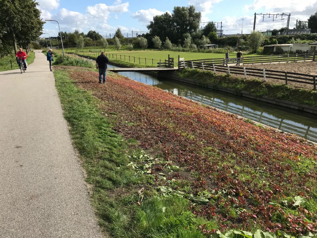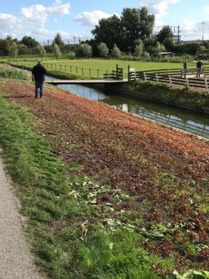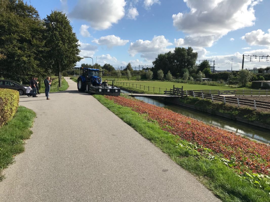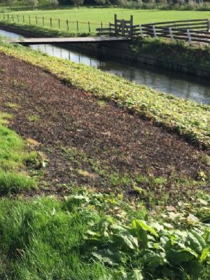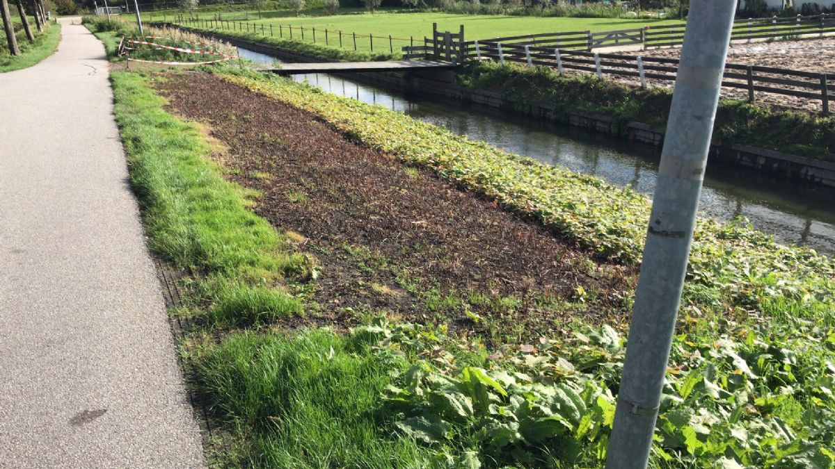 Japanse duizendknoop demoVan de demonstratie bij de haard Japanse duizendknoop zijn onderstaande foto's. Eerste foto is voor de behandeling. De plant is al wat roodkleurig doordat hij kort is gesnoeid. De tweede foto is genomen direct ná de behandeling. Op de derde foto is de situatie twee weken na de behandeling met elektricide zichtbaar. Volgens Teus van Ekeren werd dit veld tot op heden behandeld door het herhaaldelijk te maaien en te behandelen met heet water. 'Zonder resulaat.' De firma Voets wil toekomstige resultaten van de Zasso blijven delen met Vakblad Stad en Groen. Een update zal volgen na langere tijd.