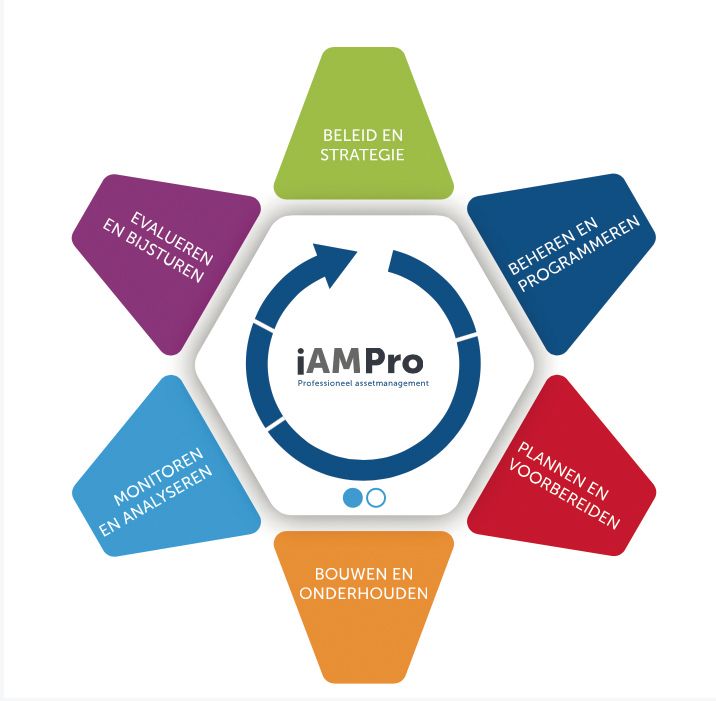 1. Ander werkproces - zes processtappenAssetmanagement is een procesmatige manier van werken. Beheerorganisaties die niet met assetmanagement werken, zijn meestal georiënteerd op de uitvoering van duidelijk omschreven en afgebakende activiteiten. De organisatie functioneert prima zolang de bestaande, goed op elkaar afgestemde activiteiten steeds opnieuw worden herhaald. Maar hoe ga je om met een dynamische omgeving?Wensen van burgers en bedrijven veranderen, net zoals de wetgeving, technische mogelijkheden, omgevingsfactoren, politieke wensen etc. Een organisatie kan hier tijdig en op de juiste manier op inspelen door aan verschillende knoppen te draaien, elk met hun eigen kostenplaatje en hun eigen effecten. Assetmanagement is het instellen van de verschillende knoppen, zodanig dat het gewenste resultaat wordt bereikt. Om dit te kunnen bereiken, worden verschillende processtappen doorlopen. Assetmanagement is dus een procesmatige manier van werken, een benadering die verder kijkt dan de eigen afdeling, want alle processen binnen de organisatie worden op elkaar afgestemd. Daarnaast wordt afstemming gezocht met beheerders buiten de eigen organisatie. Zo ontstaat een optimalisatie van ketens. Hiervoor is een cyclus van zes processtappen uitgewerkt, gevisualiseerd in het CROW-assetmanagementmodel iAMPro. Hiermee ontstaat een beter overzicht over het totale beheerproces, omdat alle betrokken afdelingen volgens vaste processtappen werken, en een integrale afstemming tussen vakgebieden en afdelingen. 2. Andere inhoudBij assetmanagement staat de vraag 'waarom, met welk doel beheren we?' centraal. Dat betekent niet alleen het doel 'behalen kwaliteitsniveau B', maar juist de vraag daarachter: hoe moet een object functioneren, welk effect of doel wil de organisatie ermee bereiken? Anders gezegd, welke prestaties moeten de objecten leveren? Wat zijn onze ambities, beleidsdoelen of organisatiewaarden, wat staat er in het coalitieakkoord en hoe kunnen de objecten in de openbare ruimte daaraan bijdragen? Hoe moeten ze worden beheerd zodat ze optimaal bijdragen?Het beheer is daarmee gebaseerd op de organisatiewaarden, bijvoorbeeld leefbaarheid of biodiversiteit. Hierdoor is meer focus mogelijk in het beheer en in de afwegingen.