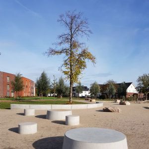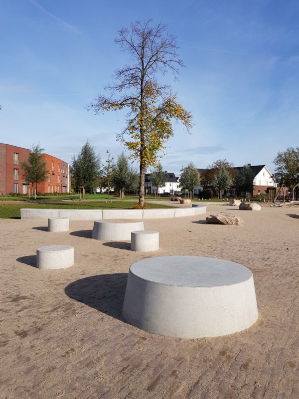 De opdrachtgever koos voor natuurlijke speeltoestellen van hout. Bij de keuze is speciale aandacht besteed aan de veiligheid van de spelende kinderen. De grote keien waarop de kinderen ook kunnen spelen, heeft de architect samen met De Enk uitgezocht bij de leverancier.