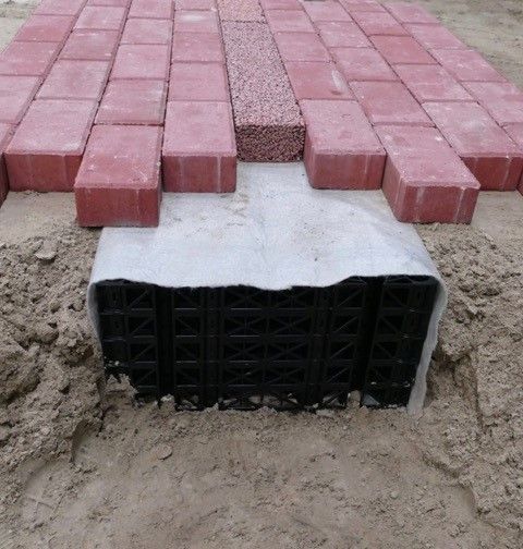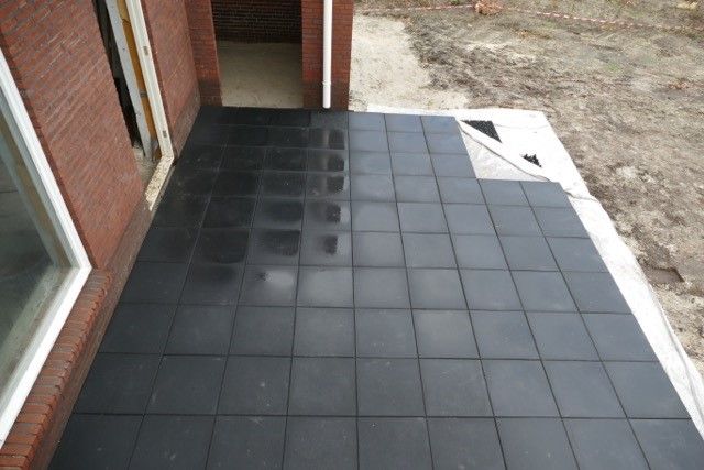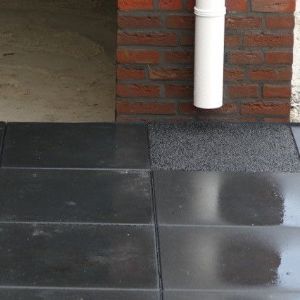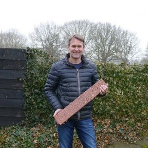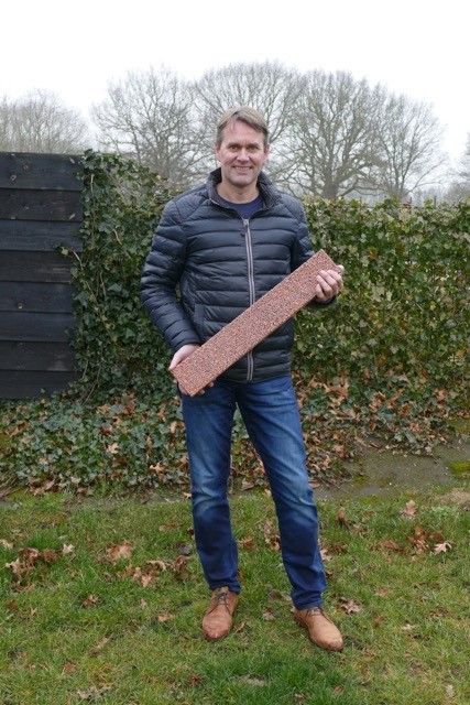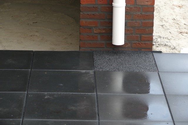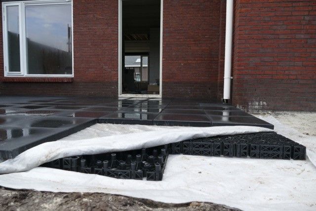 Ten grondslag aan het systeem ligt de infiltratietegel: een poreuze klinker die Noord in eerste instantie ontwikkelde voor gebruik in de veehouderij. De tegel bleek echter op een ander gebied veel handiger te zijn: voor het opvangen van hemelwater. Daarom sloeg Noord anderhalf jaar geleden met zijn Buffertegel die andere weg in. Een half jaar geleden vonden de eerste tests plaats. 'We staan aan het begin van de markt', zegt Noord. Poreuze tegelHet idee is simpel. Zo'n infiltratietegel, gemaakt van gerecycled plastic dat met een speciaal bindmiddel samengehouden wordt, ziet eruit als een gewone tegel, maar heeft in tegenstelling tot de normale tegenhangers een heel hoge doorlaatbaarheid. Water kan erdoorheen, maar bladeren en andere rommel niet; die blijven aan de oppervlakte achter.Direct verstopt onder de infiltratietegels en de normale tegels ligt de rest van wat samen het waterbergingssysteem Buffertegel vormt. Rechtstreeks uit de hemel of vanuit een bovenhangende regenpijp stroomt het water door de poreuze klinker en een filterdoek in een daaronder geïnstalleerde laag kratjes. Afhankelijk van de exacte afmetingen van het systeem kunnen daar tot wel honderden liters water opgeslagen worden. Een tweede filterdoek scheidt de kratjes van de ondergrond en zorgt ervoor dat de vloeistof langzaam aan de bodem wordt afgegeven. Behalve de Buffertegel met infiltratietegel(s), waarbij het water direct in het onderliggende reservoir terechtkomt, ontwikkelde Noord ook de Buffertegel-lijngoot. Zoals de naam al doet vermoeden, vloeit het water in deze variatie, nadat het door de poreuze klinkers gestroomd is, eerst door een lijngoot. Zo kan het eventueel naar een verderop gelegen reservoir geleid worden, om vervolgens daar opgeslagen te worden of in de grond te infiltreren. De details hangen af van de wensen van de opdrachtgever. Meer vliegen in één klapDoor het water tijdens hoosbuien op te vangen, ontziet de Buffertegel de riolen die de hevige toestroom niet aankunnen en dus neemt de wateroverlast af. Maar ook aan de andere kant van het spectrum, tijdens perioden van extreme droogte, hebben we baat bij de Buffertegel, vertelt Noord. Het opgevangen hemelwater wordt immers beetje bij beetje aan de bodem afgegeven en onderhoudt zo het grondwaterpeil. Zo bestrijdt de Buffertegel twee klimaatproblemen in één klap.Met name het grondwaterpeil is belangrijk, benadrukt Noord. 'In droge zomers daalt dat peil rap, vooral in stedelijke gebieden. Omdat grondwater essentieel is voor de stabilisatie van de bodem, daalt met dat grondwater ook de bodem.' Door de steeds hetere, drogere zomers ligt inklinking op de loer, het proces van volumevermindering van grond door verdroging of het onttrekken van grondwater. Dat is minstens een situatie om goed in de gaten te houden, helemaal in volgebouwde stedelijke gebieden. Behalve om bodemdaling tegen te gaan, zo vertelt Noord, is het op peil houden van grondwater ook van belang voor ons drinkwater. 'Willen we in de toekomst voldoende kwalitatief goed drinkwater hebben, dan moeten we het bodemwater onderhouden.' Ten slotte is ook voor het steeds dorstiger wordende (stedelijk) groen een slok op zijn tijd natuurlijk geen overbodige luxe. Streepje voor'De afgelopen jaren wordt er steeds meer aandacht besteed aan klimaatadaptie', zegt Noord, 'met name in stedelijke gebieden. Er zijn dus al veel verschillende waterbergingssystemen op de markt.' En met een dergelijk ruim aanbod moet je je natuurlijk op de een of andere manier van de rest onderscheiden. Als we Noord mogen geloven, zit dat wel goed: 'Er zijn een aantal dingen die de Buffertegel wel heeft, maar die alternatieven niet hebben.'Zo ligt het systeem veel hoger in de grond dan reguliere varianten, die vaak relatief diep en onder flinke zandlagen aangelegd worden, aldus Noord. 'De Buffertegel ligt direct onder de bestrating, dus niet lager dan zo'n 30 à 40 centimeter diep. Dat maakt onderhoud, controle en inspectie veel gemakkelijker.' Bovendien, zo laat Noord weten, ligt het gros van de plantenwortels ook rond die 30 à 40 centimeter - eenvoudig te bereiken, dus. Door die ondiepe plaatsing is ook de aanleg eenvoudiger, vertelt Noord. Zo kan de Buffertegel niet alleen in openbare pleinen en dergelijke toegepast worden, maar ook gewoon door de particulier in het terras of de oprit. Leuk is overigens dat het systeem geheel naar wens aangepast kan worden. 'We kunnen de kleur en de maat aanpassen, zodat het systeem niet opvalt', vertelt Noord. 'Of we kunnen - misschien nog wel leuker - juist een heel opvallende kleur gebruiken. Dan kun je precies zien waar de infiltratietegels of lijngoot van de Buffertegel lopen en dus waar het water naartoe gaat.' Maar wat bij de Buffertegel écht anders is dan bij andere waterbergingssystemen, is natuurlijk de door Noord zelf ontwikkelde poreuze infiltratietegel. 'De invoer van water via de infiltratietegel onderscheidt zich als inlaatsysteem. Door deze tegel komt het water al gefilterd in het systeem, zowel bij de normale Buffertegel als de lijngoot', aldus Noord. En dat zou een hoop schelen in onderhoud. Putjes, maar ook roosters van lijngoten, raken immers vaak verstopt met troep. 'Om die leeg te halen, moet de boel vaak open en dat kan een heel werk zijn. Bij de Buffertegel is dat niet nodig en veeg je bladeren en dergelijke met een simpele bezem gemakkelijk weg.' Omdat niemand op meer onderhoudswerk zit te wachten, is dat mooi meegenomen. ProefprojectenOp het moment dat we Noord spreken, ligt zijn Buffertegel op twee locaties: verwerkt in een terras in Hooghalen en in een oprit in Zeijen. Beide systemen, die meteen dienstdoen als voorbeeld en testopstelling, zijn het afgelopen najaar geplaatst. Binnenkort wordt in Hooghalen een tweede systeem geplaatst, in het terras bij een andere woning. 'Komend voorjaar wordt een Buffertegel-lijngoot geïnstalleerd in de zogenaamde Waterstraat van de TU Delft, een proeftuin voor waterafvoer. Die wordt daar een jaar lang getest, waarbij de foc