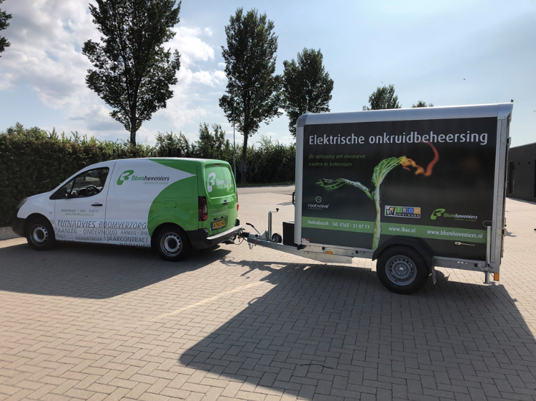 Frank Blom, directeur van Blom Hoveniers en Chris Verstappen, directeur van IBOR Advies werken samen op bij de beheersing van arealen met Japanse duizendknoop. Doordat zij beiden al enkele jaren actief zijn met deze exoten beheersing, waarbij verschillende beheersmethoden zijn geprobeerd, hebben ze vorig jaar samen besloten een Rootwave Pro aan te schaffen. Met deze Rootwave Pro wordt de plant door elektriciteit uitgeput, zonder het gebruik van chemicaliën. De bestrijding gebeurt heel gericht waardoor inheemse flora gespaard blijft.