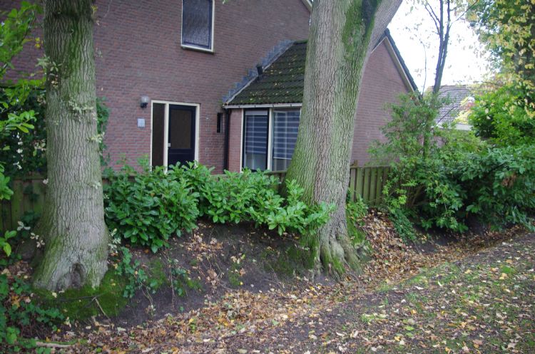 Ook hier heeft Volmerink een paar bomen op de korrel. Met veel pijn in het hart, moet hij toegeven. Maar een nadere inspectie laat onmiddellijk zien waarom de prachtige eiken niet kunnen blijven. 'Dit is weer zo'n fout uit het verleden waar we nu de prijs voor betalen. Deze bomen staan veel te dicht op de woningen. Er had minstens tien meter tussen de woningen en deze eiken gemoeten. Nu ontstaat een gevaarlijke situatie. Door de droge zomers zijn de kluiten te licht geworden. De bomen worden topzwaar. Bij een flinke storm kunnen ze omvallen tegen de aangrenzende woningen. Dit zijn pijnlijke keuzes, maar zelfs een leek kan zien dat deze situatie gevaar oplevert.'