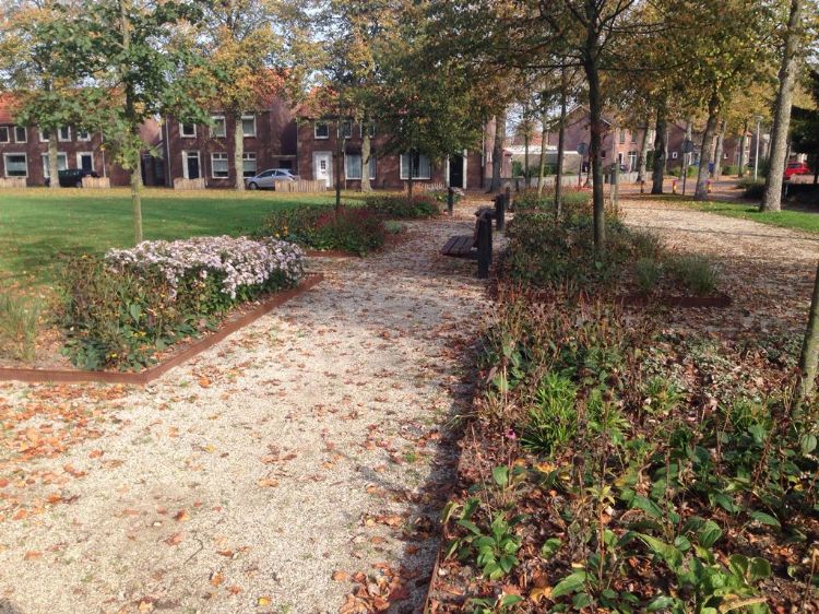 'De onderlaag bestaat voor een deel uit Padvast 0/14 mm met Padvast 0/6 mm als toplaag, maar niet overal', vertelt Pieter Smaal van Henzen Wegenbouw. 'Op de begraafplaats lagen verweerde paden van asfalt dat door wortelgroei omhooggedrukt was. Wanneer je asfalt verwijdert, weet je niet wat je eronder aantreft. In dit geval zat het asfalt deels op een zandpad en deels op een puinverharding. We hebben overlegd met Gijs Hardeman over de beste aanpak, zodat de paden evenredig waren. De hoofdpaden zijn overigens weer van asfalt en de kleinere paden hebben Achterhoeks Padvast.' 'Ongeveer de helft van de paden is vervangen door Achterhoeks Padvast', vertelt Ewald Reemst, beheerder van de begraafplaats. 'Het geeft een mooie, parkachtige uitstraling en we krijgen van meerdere bezoekers positieve reacties.' Het zand onder het asfalt bleek kurkdroog en niet te verdichten. Hierdoor was het lastig om Padvast aan te brengen zonder spoorvorming. 'Het ging schuiven', vertelt Smaal. 'Maar door de vele regen en het aanwalsen is het toch gelukt. Doordat we hebben gekozen voor twee lagen, 0/14 mm en 0/6 mm, is het stevig geworden. De regen zorgde dat het materiaal schoon werd, de juiste kleur had en goed vast kwam te zitten. Padvast heeft een mooie kleur, is leuk voor kinderen en geeft een parkachtige uitstraling.' Henzen Wegenbouw werkt onder meer voor gemeenten, Staatsbosbeheer en Natuurmonumenten.