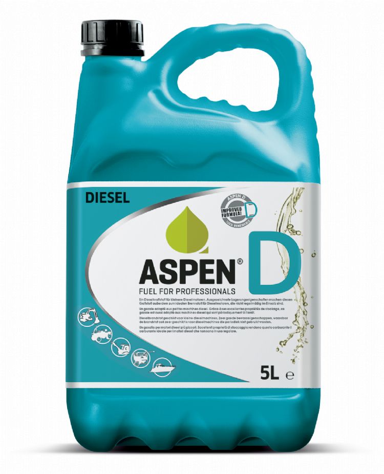 In 2017 introduceerde Aspen een schone en voor negentig procent hernieuwbare dieselbrandstof: Aspen D. Met ingang van mei 2020 is Aspen D honderd procent hernieuwbaar en dus helemaal fossielvrij. Door de nieuwe samenstelling is Aspen D voorzien van een nieuw etiket, in lijn met de vernieuwing van de etiketten van Aspen 2 en 4. Een fris en duidelijk etiket met duidelijke iconen die alle toepassingsmogelijkheden weergeven.