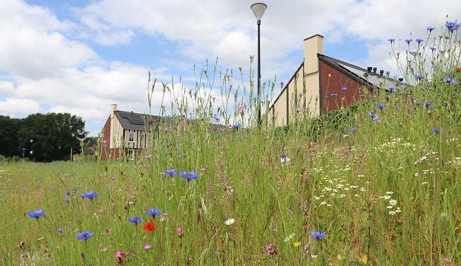 Nieuwe aanleg in het openbaar groen wordt dan ook gekoppeld aan duurzaam denken. Begin dit jaar is er een nieuwbouwproject opgeleverd, waar kleurrijke mengsels gezaaid zijn in de wadi's. Deze wadi's omtrekken het hele bouwplan. Een belangrijke functie van een wadi is de waterberging - zeker nu er steeds vaker periodes van droogte voorkomen. Kruidenmengsels passen er daarom mooi, omdat het wortelstelsel helpt bij het filtreren en vasthouden van het water in de bodem. Ondanks de droogte dit voorjaar staat de vegetatie er prachtig bij, het project is zeker geslaagd. Een positieve ervaring met kruidenmengsels binnen de bebouwde kom. 'Je moet het wel blijven uitleggen aan de mensen. Iedereen vindt er iets van en wil er iets anders mee als het gaat om het maaibeheer. Daar moet je wel begrip voor kweken', geeft Meijer aan.