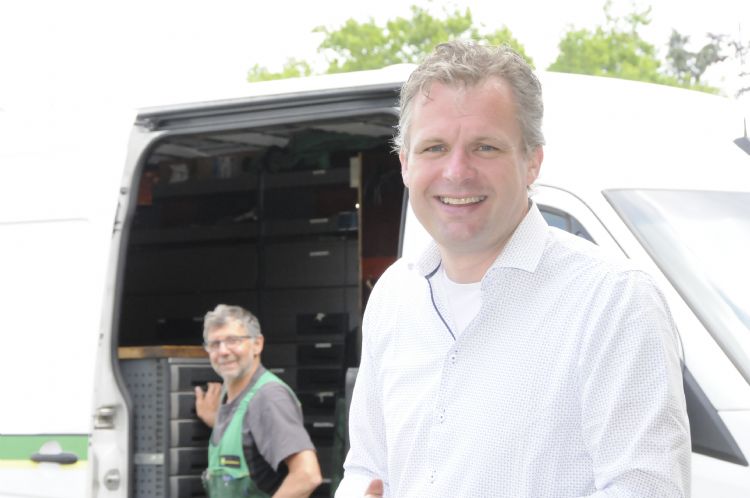 Lex Zandbergen wijst op een van de servicebussen, die net door monteur Jan van de Kop wordt volgeladen om naar een reparatieklus te gaan. 'Wat denk je dat een dergelijke bus kost? Volledig geoutilleerd € 80.000. Wij zijn een dienstverlenend bedrijf. Wij mogen machines leveren bij de gratie van het feit dat onze monteurs die vervolgens kunnen servicen en perfect werkend kunnen houden. Daar is ons hele bedrijf op ingericht. We hebben in totaal 90 monteurs in dienst, die alle 90 continu getraind moeten worden om bij te blijven in de markt. Dat kost allemaal tijd, geld en daar denkt een klant vaak niet aan. Het is toch normaal dat een officiële dealer van een merk als John Deere alles weet. Daarom erger ik mij weleens als iemand ons de 100 euro marge gunt die we maken op de verkoop van een nieuwe machine waarvoor wij veel commerciële collega's in dienst hebben, maar voor het onderhoud vervolgens naar een ander gaat omdat de monteur daar vijf euro per uur goedkoper is. Maar als dat bedrijf of klant er niet uit komt, dan wordt een belletje gepleegd naar de dealer hoe de machine wel gemaakt kan worden. Kun je dan een rekening sturen? Nee, natuurlijk niet. We hebben daarnaast ook te maken met de snelle opkomst van accumachines, zeker in de openbaargroenmarkt. Dat heeft voor onze klanten veel voordelen, maar deze machines hebben voor ons het nadeel dat ze veel minder onderhoud nodig hebben. Als er vervolgens toch problemen zijn, moet je daar een monteur op zetten met heel andere competenties. Vroeger had een monteur standaard een blauwe overall met vlekken. Een moderne monteur heeft een laptop. De marges worden lager, de kosten hoger en de totale markt is al jaren aan het krimpen. En de huidige Co2, PFAS en Corona perikelen helpen daarbij ook niet.'