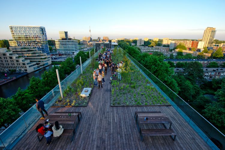| Retentiedak gebouw De Boel, De Boelelaan, Amsterdam. Gebouwarchitect: Hans van Heeswijk Architecten. Aanleg retentiedak: De Dakdokters. Foto: Jan-Kees Steenman |