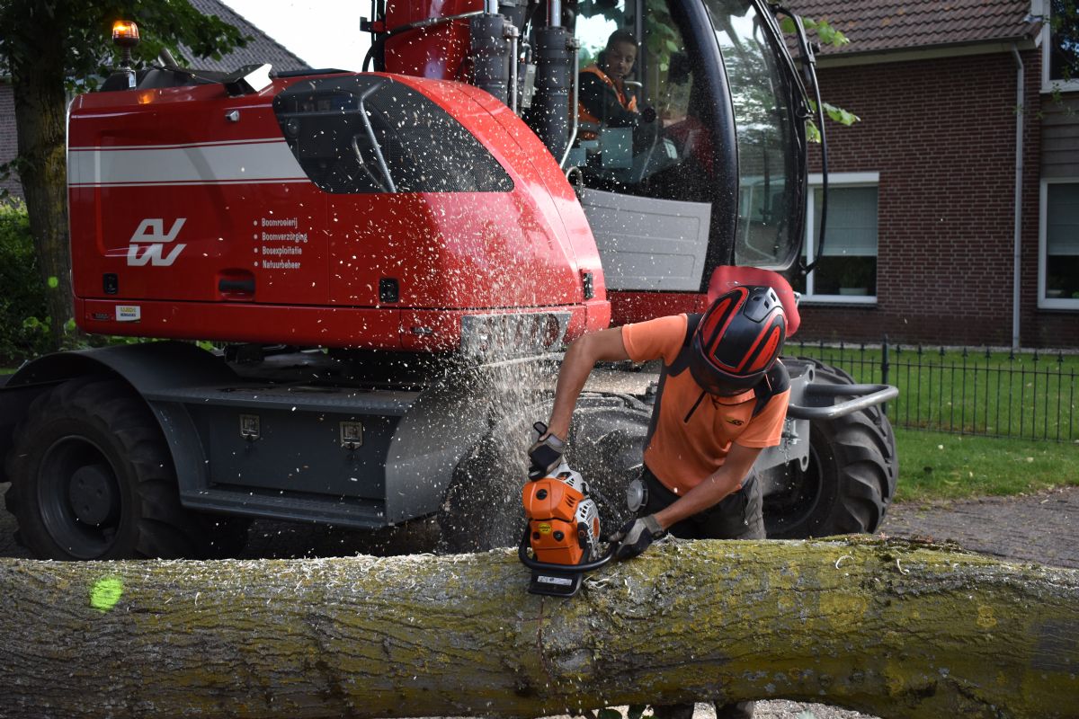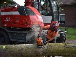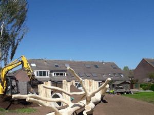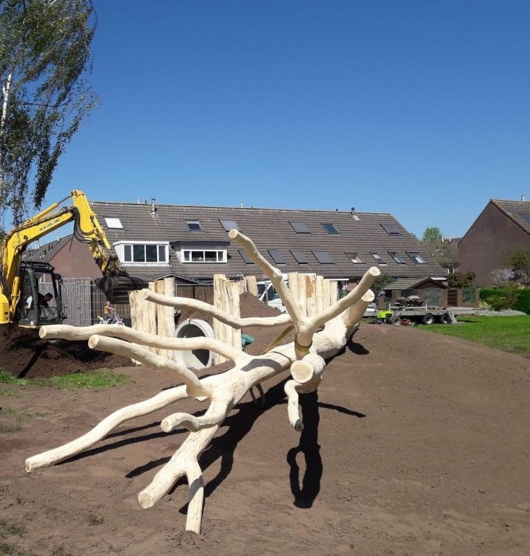 'Wij streven ernaar om stamhout, snoeichips, freespulp en groenafval zo veel mogelijk lokaal, zelf en in samenwerking met partners te verwerken voor duurzaam hergebruik', vertelt Van Weert. 'Wij sorteren en verwerken bijvoorbeeld steeds meer stamhout voor hekwerken, poorten, bijgebouwen, overkappingen, slagbomen, natuurlijke speelplekken, dierenverblijven, decoratie enzovoort.'