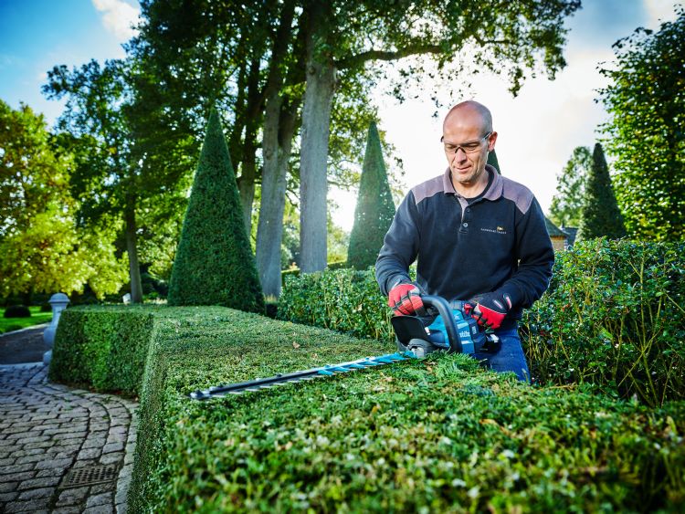 De slagsnelheid kun je zelf in drie stappen regelen. Hierdoor schakel je eenvoudig van een hoge slagsnelheid voor bijvoorbeeld een buxushaag naar een lagere slagsnelheid voor een beukenhaag.