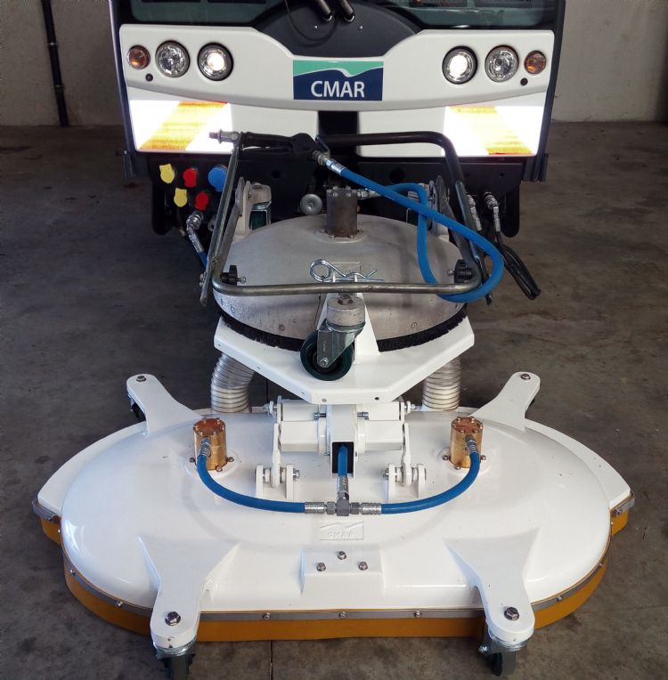 Patrick Zeeuws stuurt in Mechelen het Team Openbare Netheid aan. Met onder meer achttien veegwagens, twaalf vuilzuigers en twee zelfrijdende R2500-reinigingsmachines onderhouden ze het straatwerk in deze stad. Specifiek deze twee R2500-reinigingsmachines zijn ideaal om stadscentra te onderhouden en te reinigen. Het team werkt er inmiddels drie jaar mee. De fabrikant, het Franse CMAR, meldt overigens dat ze ook zeer geschikt zijn om in industriële omgevingen te gebruiken. Het straatwerk wordt bewerkt onder hoge druk en met weinig water, eventueel met additieven, in een dichte frontbak aan een werktuigendrager. Dat gebeurt met heet water en hogedruknozzles. Het gebruikte water wordt daarna opgezogen in een afgezonderde vuiltank.