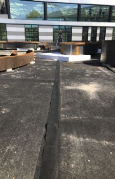 ND 5+1 drainagesysteem uitgerold, overlap met vlies gemaakt. De randen van de plantenbakken zijn op het systeem geplaatst waardoor een teveel aan water altijd afgevoerd kan worden. Foto: Nophadrain.