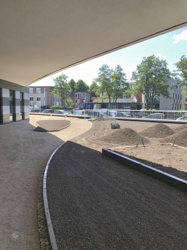 Nophadrain is niet helemaal vanaf het begin bij het project betrokken, maar twee jaar geleden na de start van de bouw, gevraagd door de tuin- en landschapsarchitecten van Copijn. 'Wij werken vaker met dit bedrijf samen. Net als met hoveniersbedrijf M. van der Spek Groep. De ene keer vragen zij ons erbij, een andere keer vragen wij hen. De uiteindelijke uitvoering van het park is pas dit jaar begonnen.'