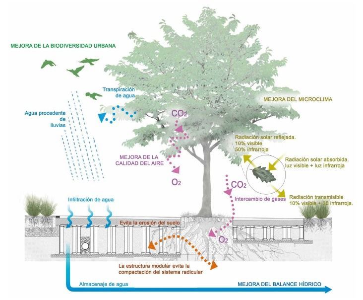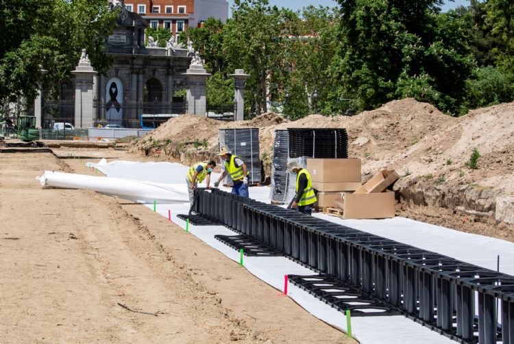 De hoogte van de doorwortelbare ruimte werd gedimensioneerd op 100 cm, maar deze hoogte was plaatselijk niet meer mogelijk. De stadsarcheologen besloten om de 17e-eeuwse weg te laten liggen zonder deze verder aan te tasten. In samenwerking met de gemeente Madrid, de betrokken landschapsontwerpers en Treebuilders werd besloten om het systeem in hoogte aan te passen.