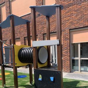 De leerlingen hadden goed nagedacht over wat ze voor ogen hadden. Aan Hercules Speeltoestellen de beurt om enkele voorstellen te maken. Hieruit hebben de leerlingen een keus gemaakt: speelcombinatie WD1409. Dit toestel biedt veel klimmogelijkheden voor verschillende leeftijdscategorieën. Verder sluiten de looks van het toestel goed aan bij het moderne schoolgebouw.