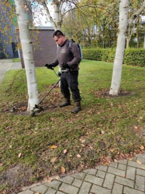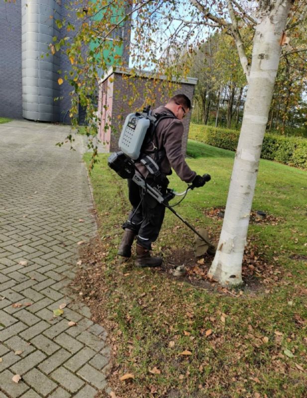 Michiel de Rooder, voorman bij Eijk Groep en werkzaam in het Gooi, Almere en Lelystad, knikt. De Rooder werkt met de bosmaaier, bladblazer, heggenschaar en duwmaaier van EGO. Behalve bij de duwmaaier wisselt hij de accu's van zijn machines onderling uit. De Rooder heeft ervaring met de BAX1500-ruggedragen accu in combinatie met de EGO BXC3800. Hij gebruikt de EGO-bosmaaier voor 60 tot 70 procent om onkruid te maaien op verhardingen rond paaltjes en langs gebouwen; de rest van de tijd maait hij ermee. Eijk Groep heeft sinds maart dit jaar één EGO-set in Almere, één in Apeldoorn en één in Utrecht. Bij de werkzaamheden die De Rooder uitvoert, gaat de accu maar liefst zes uur mee wanneer de machine aan één stuk door draait.