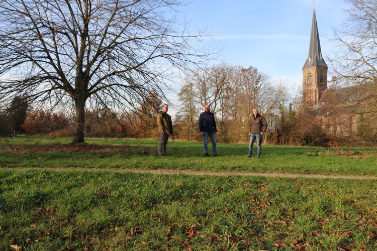 V.l.n.r.: Jos Schoneveld (gemeente Voorst), Job Steunenberg (Advanta) en Herbert Hofmeijer (Hofmeijer Voorst) op het veld waar in 2020 een zaaiproef met kruidenmengsels is toegepast.