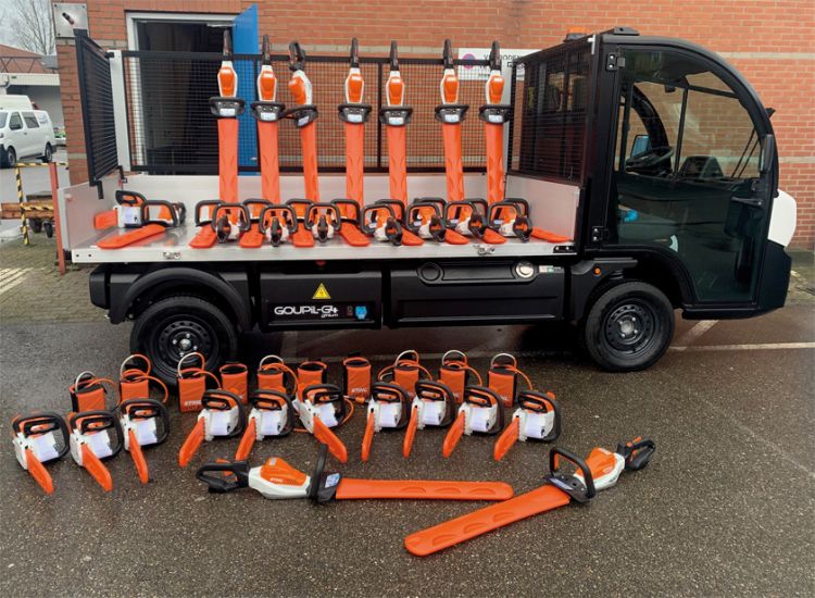 Maar Promen is al een flink eind op weg: er zijn nu drie 100 procent elektrische G4-Goupils met lithiumaccu aangeschaft, circa 25 Stihl-heggenscharen en 15 Stihl-kettingzagen. 'Als het gaat om gereedschap wil Promen dit jaar zoveel mogelijk elektrisch hebben. De Goupils gebruiken we om binnensteden en parken schoon te houden. Ze zijn emissieloos en compact en hebben een korte draaicirkel, zodat alle plekken bereikt kunnen worden. We hebben de Goupils ook omwille van het lage gewicht, gezien de instabiele ondergronden in deze regio. Ze hebben een actieradius van 120 kilometer op een volle accu.'