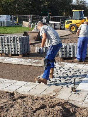 Dekker vervolgt: ‘De bedoeling van een grasbetonsteen is dat deze zoveel mogelijk overgroeid raakt. Bij de Rainaway is dat niet het geval. Esthetisch gezien willen wij een mooie mix zien te bereiken tussen groen en grijs. En anders dan bij de grasbetonsteen willen we dat de Rainaway niet overgroeid raakt. Je mag de steen blijven zien. Zo rij je over het beton en blijft het gras beter overeind.’