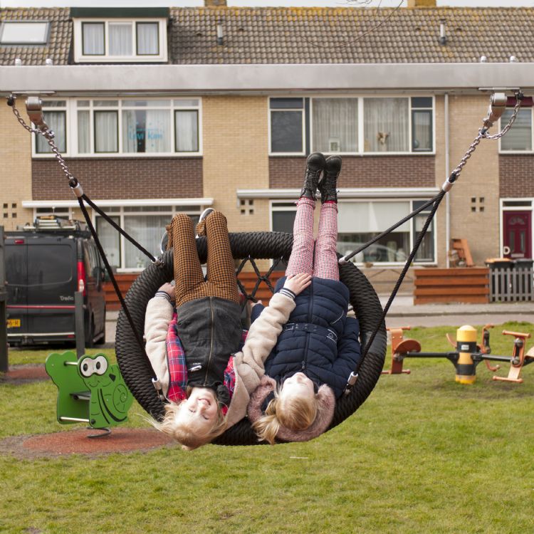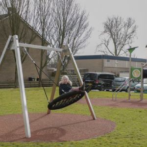 De speelplek is verder uitgerust met valdempende Tigermulch met EPDM toplaag ondergrond.