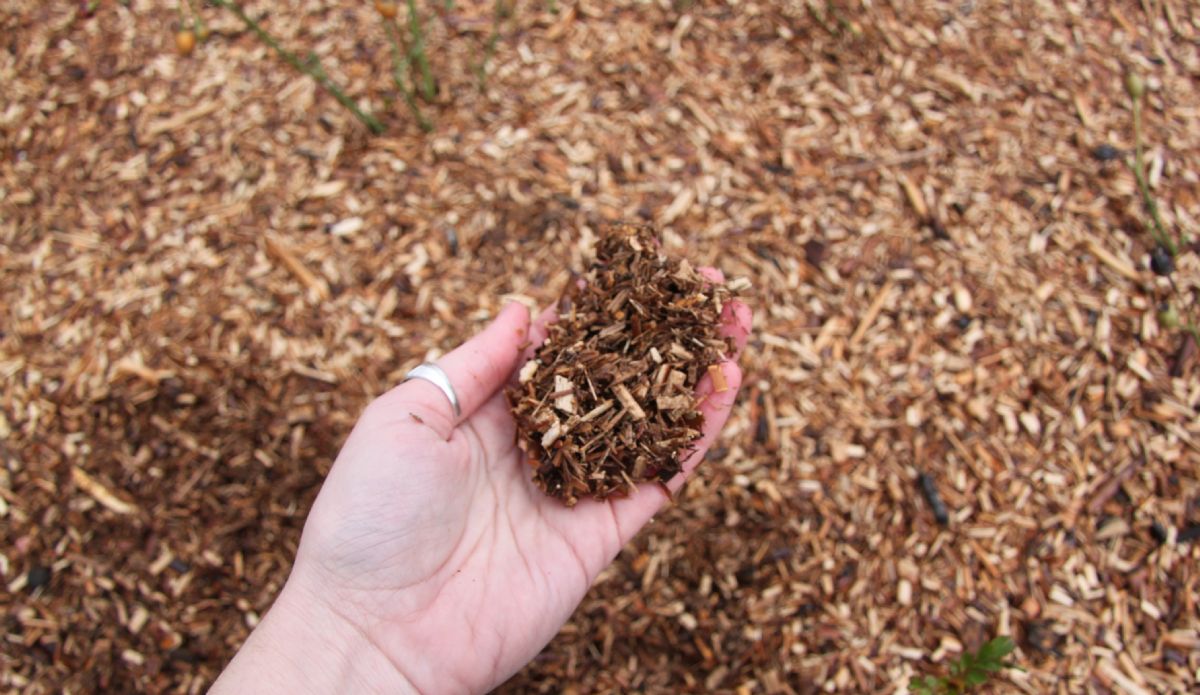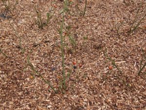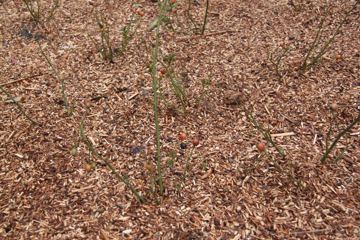 De middenberm werd vervolgens afgestrooid met een laag van pakweg 5 cm Miscanthus-snippers. Daar zijn meerdere redenen voor geweest, legt de projectleider uit. 'Het stimuleert het bodemleven en het bevordert de waterhuishouding in de grond.'