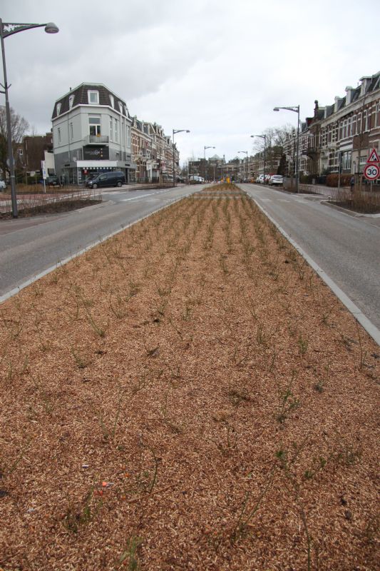 Ook onderdrukken de snippers onkruidgroei. Dat is met het oog op onderhoud wel zo handig. 'De St. Annastraat is een drukke weg en intensief onderhoud zoals achtmaal per jaar onkruid wieden, is daar niet wenselijk.'