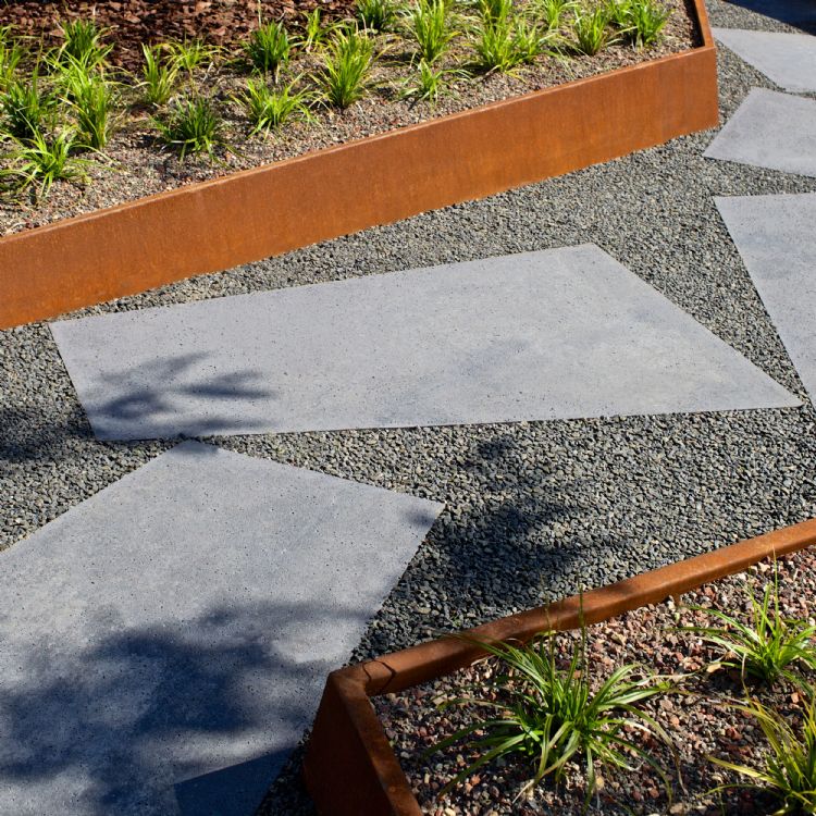Het idee was om grote betonnen tegels te gebruiken, met daar tussenin gekit grind. Van Osch: 'Zo realiseren we een vaste verharding die goed beloopbaar is, water doorlaat én een mooi beeld geeft. Toen was het zoeken naar mooie betontegels. Dan kom je al gauw uit bij Schellevis. Mooi beton maken is een kunst die zij verstaan. De tegels zijn niet helemaal vlak en bevatten kleine belletjes; dat geeft ze een natuurlijk karakter.'